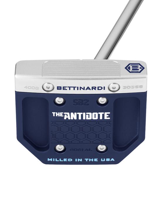 This Antidote Series putter comes paired with a Chrome Tour Grade shaft, a 17" navy Winn grip, and an Antidote Series magnetic headcover.