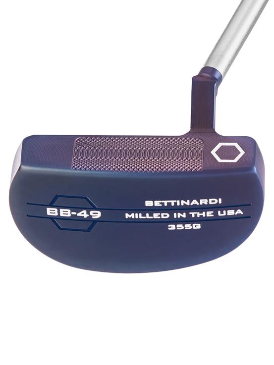 The Bettinardi BB Series 26 Putter (BB-49) is designed for players seeking a compact mallet with a moderate arc in their putting stroke. The slant neck design offers slight toe hang and minimal offset at address, creating a gradual flow of the shaft leading into the club head. The BB-49 is engineered with a smooth transition from topline to shoulders that seamlessly melts into the flange. This design distributes weight evenly around the perimeter of the putter head, providing exceptional balance and control.