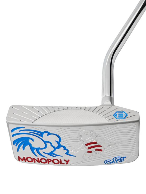 The Bettinardi QB6 Mr Monopoly Surf Day Ltd Putter will let you pass GO and ride the waves with Mr Monopoly! This 303SS Queen B 6 is a true collector’s treasure, where the two-tone face was reimagined to feature a sun beaming over the horizon, and the fine flymill hitting surface was polished to give the putter beautiful contrast. On the sole, you’ll find Mr Monopoly catching a wave in style, all brought to life with vibrant red and blue paint fills. A flangeline and money-sign sight dot seal the deal, making this putter a high-stakes blend of form, function, and fun. Comes complete with a matching Mr Monopoly surfing blade putter headcover and a black perforated leather Hex B Gripmaster grip. Only a few lucky players will land this one; don’t miss your chance to own a piece of the board!