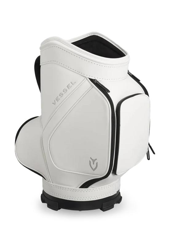 The Vessel Den Caddy 2.0 packs big style & functionality into a small silhouette. A hidden trapdoor allows this den caddy to act as a ball dispenser on the range or backyard putting green. The large top opening makes it easy to fill with golf balls, while 3 zip pockets provide extra storage. Beautifully crafted from the same tour-grade synthetic leather as our staff bags, this Den Caddy also features 3 areas for personalisation. With its sleek silhouette, high-end materials and personalisation options, the Den Caddy 2.0 is the perfect accent piece for the driving range, golf shop or office.