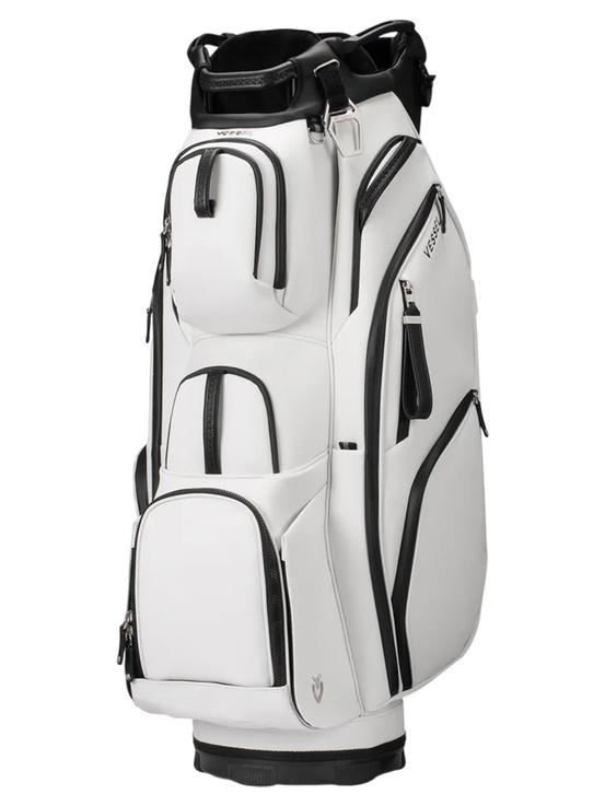 The Vessel Lux Pro Cart 2.0 15-Way Cart Bag redefines what it means to ride in luxury. Building on the legacy of our best-selling cart bags, Series II introduces expanded velour-lined pockets for valuables, additional magnetic closures for effortless access and a discreet AirTag® compartment for peace of mind during travel.